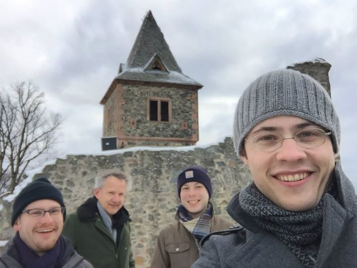 The day after our concert, we had the pleasure of giving Tilman’s students a lecture on our music and life: the commissioning process, extended techniques on the guitar, and the ins and outs of surviving as a professional guitarist. After lunch, we convinced Herr Hoppstock to drive us up to Castle Frankenstein. Actually, it was his idea, and yes—Castle (or Burg) Frankenstein. It seems pretty debatable as to whether this really is the castle that inspired Mary Shelley to write the landmark horror novel, but nonetheless, it was still a mind-blowing experience for three young San Franciscans to visit an 800-plus-year-old castle. The experience was lovely but frigid, though it did inspire us to take some pretty cool rock-band-esque press photos.