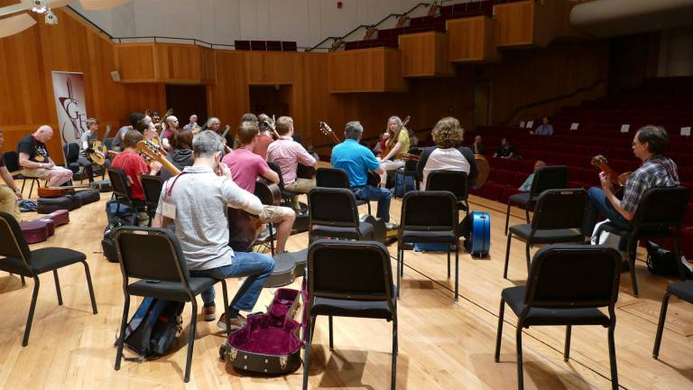 Somehow I forgot to mention one of the performances I saw during my three full days there: Opening the Amadeus Duo concert on June 20 was the Youth Guitar Orchestra, once again under the steady and inspiring leadership of Chuck Hulihan, who conducted the large ensemble in a spirited and expertly delivered version of Annette Kruisbrink’s four-part Mùsica Latina Fácil, a charming if perhaps overly fácil tour through a few Latin/Brazilian styles. I always get a little choked up thinking about how many of these young players are just at the beginning of what could well be long and amazing careers, so kudos to Chuck and the GFA for giving them the tutelage and some exposure…