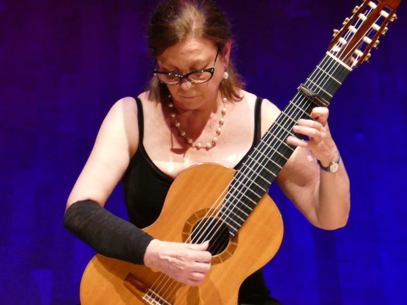 The first of the concerts I got to see (June 18) featured the adventurous English guitarist Laura Snowden, who graced the Fall 2016 cover of Classical Guitar magazine, but hadn’t appeared in the U.S. until this past spring. It was worth the wait! Her stimulating program was bookended by deftly played classical pieces by Sor and Regondi, but dominated in the middle by a trio of modern works, two of which she wrote: the haunting Anpao, which includes gentle flower-petal passages that sound almost like they’re being played on a koto, and short wordless vocal moments, full of interesting overtones; and L’étoile et la rose, which she explained was inspired by the children’s story The Little Prince. The third modern piece was Ollie Mustonen’s dramatic, occasionally cacophonous Sonata No. 2, which was a 2017 Julian Bream Trust commission Snowden premiered in London. Snowden’s engaging stage personality and obvious skill as a player seemed to win over an audience most of whom had probably never heard her at all—she has yet to put out an album, but that is bound to change. She’s one to watch, for sure!