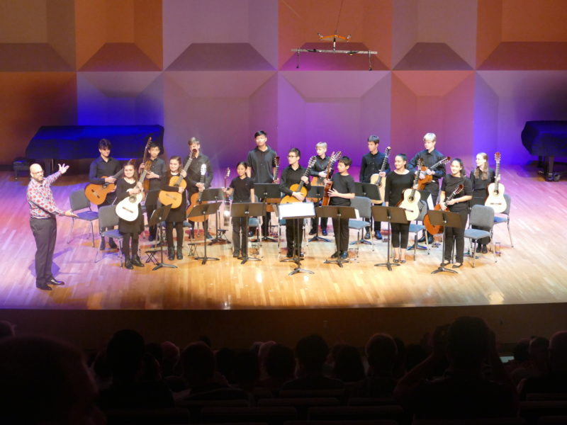 Another GFA tradition is that the Wednesday Night concert opens with a piece performed by the Youth Guitar Orchestra, under the patient and always enthusiastic direction of Chuck Hulihan, head of the guitar program at Glendale Community College in Arizona (and with other credits too numerous to list here). It’s always a kick to hear a large group (in this case 15) of young players—some perhaps the guitar stars of tomorrow!—performing together with comparatively little rehearsal. They’re always good, too; this year might have been my favorite of the past five I’ve seen at GFA. The short work they played was a world premiere, too: Guitarchestra No. 10 “Festive” by British composer Mark Houghton. I loved the way some of the guitars took on cello-like tones in parts to create a resonant bass underpinning to support the main theme, which sounded vaguely Italian to me (more Morricone than Carulli!), and I also appreciated that it had some slightly off-kilter melodic jabs that brought Bernard Hermann to my mind. Really a lot of fun. It was just about flawless, and the standing ovation was well-deserved. Here’s a link to the music at Les Productions d’Oz. And you can watch the GFA performance here.