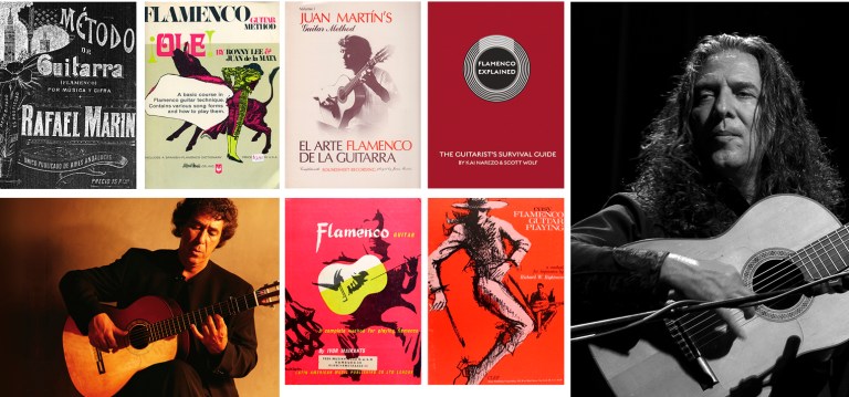 Today, we have the great luxury of multimedia-format flamenco guitar methods, where we can be guided by a combination of the printed page in manuscript and tablature, accompanied by recorded music and video clips. One of my favorite writers of contemporary flamenco guitar methods is Juan Martín (who studied under both Niño Ricardo and Paco de Lucía). He has several, all of which are excellent. The first to catch on was the still-popular El Arte Flamenco de la Guitarra, which came out in 1978 and was accompanied by a music cassette tape (and a CD in later reprints), and more recently a series of books published by Mel Bay, including two volumes of Play Solo Flamenco Guitar with Juan Martín (each containing a CD and DVD) and Essential