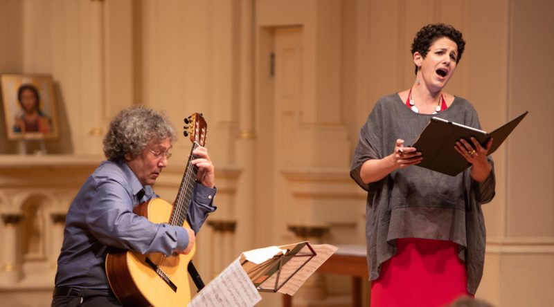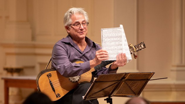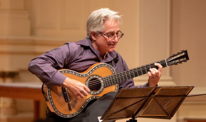 Richard Savino opened the concert with a program that found him performing two pieces—by Domenico Pellegrini and Santiago de Murcia—on Baroque guitar, and then, switching to an “early classic guitar” for two movements from a pair of delightful 18th century guitar sonatas by Juan Antonio Vargas y Guzman.