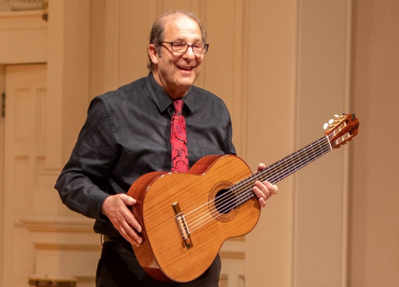 In what was billed as his final public performance with his fellow SFCM maestros, retiring teacher Lawrence Ferrara played an all-South American program that included two popular short works by Venezuelan Antonio Lauro—El Niño and El Marabino—followed by Sérgio Assad’s arrangement of fellow Brazilian Egberto Gismonti’s Palhaço. He concluded with strong and sensitive versions his own arrangements of works by Argentinian Astor Piazzolla, including Oblivion and Libertango. At the conclusion of his performance, Ferrara earned a long and very fond standing ovation from the crowd, which no doubt included a number of his past and present students. It was a nice capstone to the much-loved teacher’s nearly four-decade career. (Fun fact: Ferrara was the first guitarist to earn a master’s degree from SFCM!)