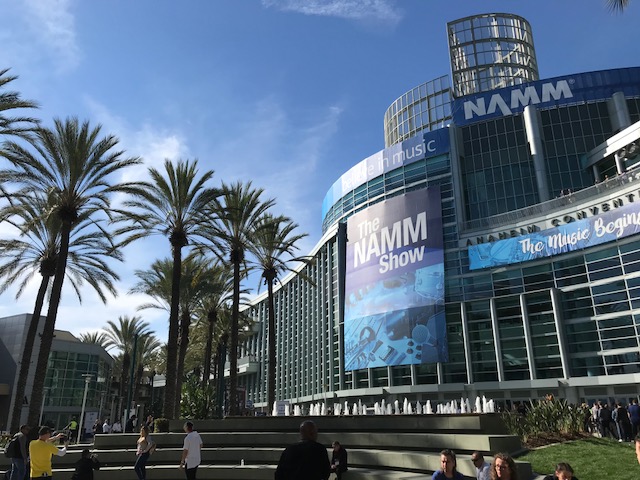 Well, the giant 2019 Winter NAMM (National Association of Music Merchants) convention in Anaheim, California (south of L.A.), is over now, and all that lingers are my aching feet, ringing ears, and a mildly hoarse voice from talking above the noisy din of a thousand electric guitars turned up to “11,” drums bashed at deafening levels, hundreds of trumpets and saxophones and violins and keyboards all being played at the same time every second somewhere on the convention floor, and endless thwacking electric bass rattling my insides. It’s still fun, though, being immersed into this cacophonous maelstrom of sound! It’s all musicians and music merchandisers, and folks involved somehow with the music business. Good people!