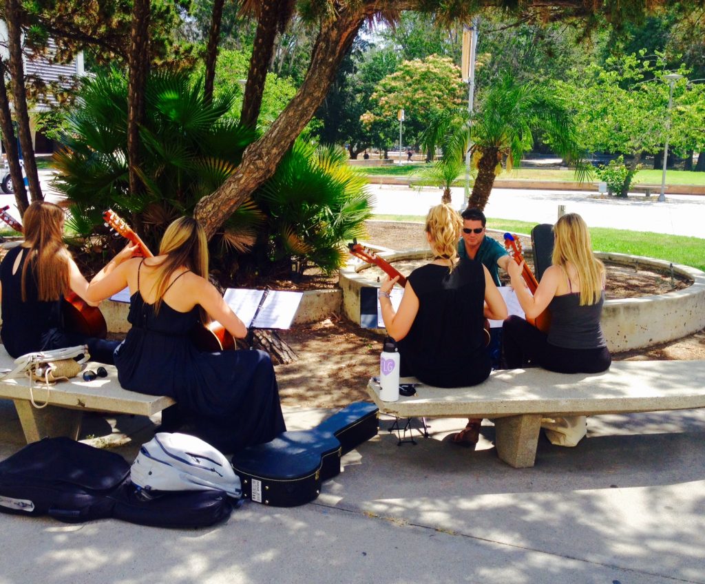 Lastly, here’s a photo of a common scene around GFA this week: The young NPA Quartet from Flagstaff, Arizona, practices outside before the ensemble competition: