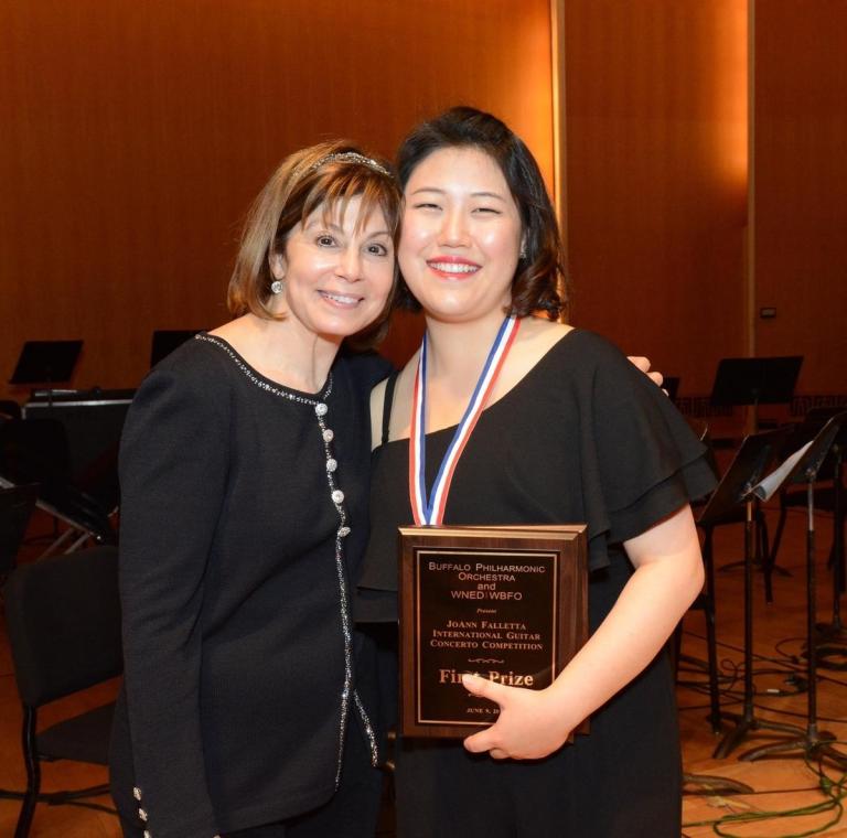 Congratulations to 23-year-old South Korean guitarist Bokyung Byun on her First Place finish in the prestigious JoAnn Falletta International Guitar Competition, held June 6–9 in Buffalo, New York. She is the first woman to win the competition, and she also was voted the Musician’s Choice award from the Buffalo Philharmonic Orchestra, which performs with the finalists. Byun performed Concerto pour Guitare et Petit Orchestra by Heitor Villa-Lobos and “Salseado” from Sonata for Guitar by Roberto Sierra.