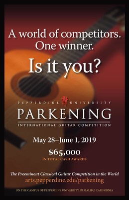 The Parkening Young Guitarist Competition, for guitarists age 17 and younger, will be held at Pepperdine on Tuesday, May 28 and Wednesday, May 29, 2019. This two-day event will help to identify outstanding young guitarists and encourage them to continue their performance careers and studies.