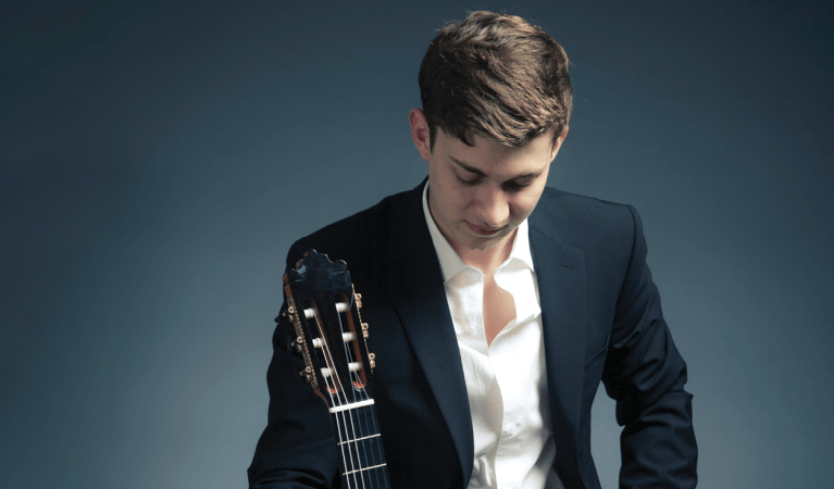 Garcia’s newly released CD, Leyendas (“Legends”), on Warner Classics’ Erato imprint, consists entirely of Spanish and South American repertoire. Three of the pieces he played at the GFA concert—the Piazzolla, the Manjon, and the Rodrigo—are joined by a pair of classical-guitar repertoire warhorses—Albeniz’s Asturias and Francisco Tárrega’s Recuerdos de la Alhambra—and the less-played (but still popular) Sevilla by Tárrega and Falla’s Siete canciones populares españiolas (on which Garcia is joined by cellist Edgar Moreau, an Erato labelmate).