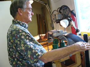 Decker’s background was not in music. As he put it in the biographical sketch on his website (guitarmasterworks.com), “I was trained as an aeronautical engineer [at M.I.T.] and a physicist [PhD from Cambridge U.], and spent most of my career as a technical manager, primarily in the semiconductor and aerospace industries.” Those experiences have greatly informed his guitar-making through the years—interviewing Decker about guitars would have been much easier if I’d taken physics and chemistry in high school. But I didn’t, so some of what he said frankly sailed over my head.