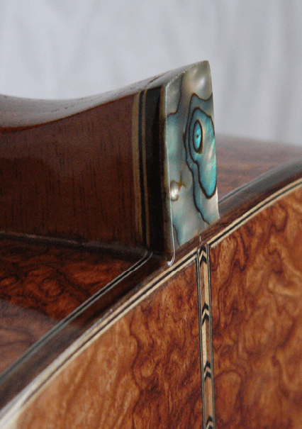 About half of the guitars Decker makes these days are custom commissions, the other half “dealer’s choice,” so to speak. “I usually have two or three in process at any given time,” he explains, “and if I haven’t got an order to keep me busy, I crawl through the woods I’ve got and pick something I like and make it.”