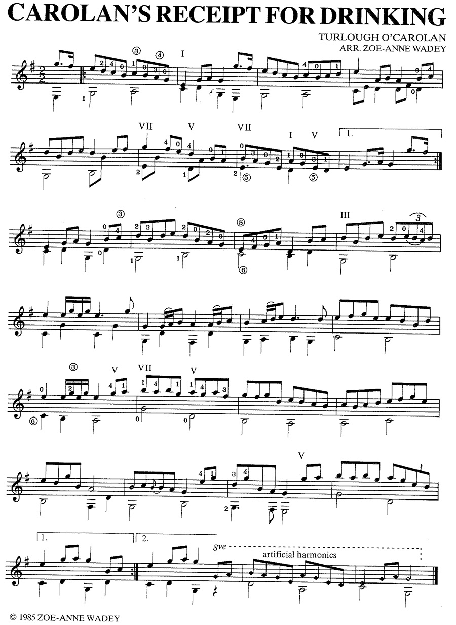 Turlough O’Carolan was a blind Celtic harper, composer and singer in Ireland (1670–1738). The interest in this famous “harper” has grown in recent years and this tuneful, rhythmic piece fits very neatly on the guitar. The fingering is by the arranger.