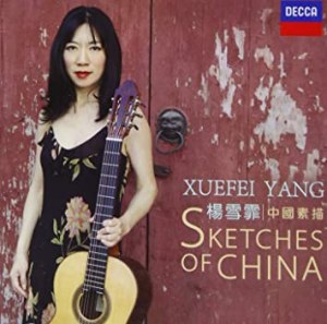 From my December 2020 review of this Xuefei Yang album: “A truly wonderful two-CD set devoted to both ancient and modern Chinese works, recorded in Beijing. Most are solo guitar pieces, but a handful find her accompanied effectively by an orchestra or a solitary guzheng or xiao (bamboo flute). Disc 1 is the more traditional-sounding of the two… artfully combining classical guitar with folk music… There is a spare beauty to so much of this music; as Westerners, it is natural that we associate this sort of music with decorative Chinese art—scenes of waterfalls cascading over rocks, rippling streams, delicate trees dotting steep hillsides. But as Xuefei says in her helpful notes, these aren’t just evocative natural landscapes brought magnificently to life, though they are that. They are also portraits of human emotions… Xuefei’s ability to mimic certain traditional Chinese instruments on her guitar is uncanny—the quick slides up and down the fretboard; the seemingly endless variations of tremolo (so different than Barrios!); the distinctive, crisp, individuated plucking of certain notes; the at times brash and explosive strumming; the glistening rushes of notes that sound like they’re pouring out of her instrument; the creative employment of harmonics. This is a seriously virtuosic performance that takes ‘classical guitar’ in many exciting new directions. Disc 2 introduces more ‘modern’ elements to the sound—get ready for a handful of pieces (or parts of pieces) where the plucking turns to abrasive snapping, rhythms become abrupt and irregular, and the serene beauty of country landscapes gives way to what sound more like gritty, overcrowded city scenes; at least that’s how I hear it. Even at its most abstract, however, there are still wisps of tradition blowing through the music, but in a sometimes startling new context. [It is] truly remarkable musical achievement.”
