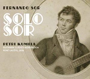 Finnish guitarist Petri Kumela does a superb job on this all-Sor outing, which mixes some of the most popular pieces (the Gran Solo, the Mozart Variations, the Fantasie Élégiaque, the Andante Largo, Op. 5, for example) with some relatively less-played numbers from his Estudios and the complete Seis Bagatelles. Kumela is certainly not the first modern player to play Sor on a period instrument, but this 1826 René Lacôte guitar, recorded with tremendous care by producer/engineer Simon Fox-Gál, really does sound magnificent here—warm but exquisitely clear, with assertive basses and the perfect amount of ambience to bring out the instrument’s golden and at times quite pianistic tones. In his album notes on the instrument, luthier Gabriele Lodi (who restored the guitar in 2014) writes, “This particular instrument was made at a very important point in Lacôte’s career, when he was applying the directions and suggestions of Fernando Sor to his construction. Lacôte was able to meet the demands of Sor with a guitar model that respected the construction and aesthetics of the traditional French style, but at the same time had a more flexible soundboard to evoke the Spanish guitar sound that Sor always loved so much.” In short, this instrument was made to play this music, and Kumela is definitely up to the challenge. It sounds like living history, and it’s a joy from beginning to end.