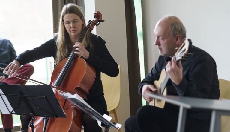 In this particular case, the Netherlands-based Boreas Duo (cellist Johanna Varner and guitarist Dick Toering) serve up a delicious menu of Renaissance and Baroque pieces by Purcell, Handel (two from each) Dowland, Bach, and the less-known Alessandro Marcello (1669–1747), all of which “favor” the cello, casting the guitar in a more supportive, rhythmic role (sometimes the crisp guitar lines sound like harpsichord continuo). This is not a criticism; the duo plays marvellously together, occasionally harmonizing beautifully, but it is more cello-centric than some I’ve heard in this combination. The opening “Aria” from Villa-Lobos’ striking Bachianas Brasileiras No. 5 (written in the late 1930s and early 1940s) serves as a bridge between old and newer pieces, and gives the guitar more interesting things to do. Interestingly, this Baroque-Brazilian fusion was originally scored for soprano and multiple cellos; here, the cello appears to borrow from both the soprano line and the most prominent bowed cello line, while Toering’s guitar keeps the rhythm of the plucked cellos in the piece and also contributes some modern chordal elements. It’s a wonderful version.