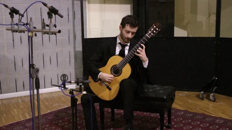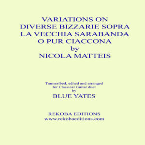 Some of you may recognize the name of the arranger of this attractive set of theme-and-variations on a work by the Italian Baroque composer Nicola Matteis (c. 1650–1700)—Blue Yates wrote one of the pieces we published in Classical Guitar’s “Music to Play” column; Prelude No. 4, which appeared in the Fall 2017 issue. Here, he has taken a piece originally written for violin and transcribed it for two guitars, a process that Yates says was quite challenging: “the legato phrasing of the original semiquavers [16th notes], for example, proves quite difficult to transfer to classical guitar. the two instruments’ idiomatic elements actually provide interesting changes to the transcription, offering a melodic and texturally interesting contrast to the original.” The attractive piece consists of a one-page theme, and then five variations, totaling under seven minutes. You can hear it here.