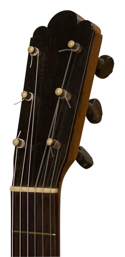 Torres used a headpiece with three arched points, a larger point in the center, flanked by two smaller ones. Although not critical to the sound of the instrument, this design became an archetype for many classical guitar luthiers, including Hauser, Velazquez, and Romanillos.
