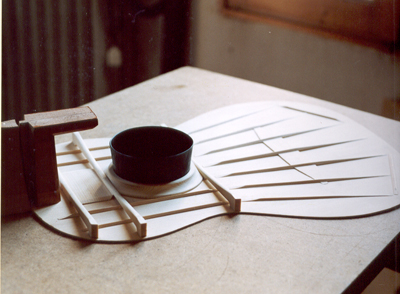 Having a soundboard that was thinner and larger in surface area than was typical required significant structural support. For that, Torres chose a “fan” design. Fan struts were initiated by the Andalusian school of guitar makers. According to Romanillos, “This idea can be traced back to Sevilla and to the work of Francisco Sanguino, a master craftsman whose work stands out among his contemporaries.” Torres’ bracing pattern typically included either five or eight struts.