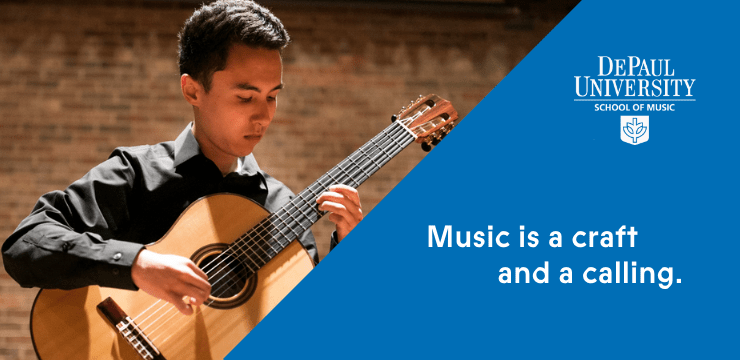Go beyond the music. That’s the beauty of studying classical guitar at the DePaul University School of Music with faculty member Mark Maxwell. Designed to be rigorous and collaborative, our programs of study give you the tools needed to confidently pursue a life dedicated to music. Benefit from legacy and apply for the Richard Pick Endowed Scholarship, renewable annually for classical guitar study.
