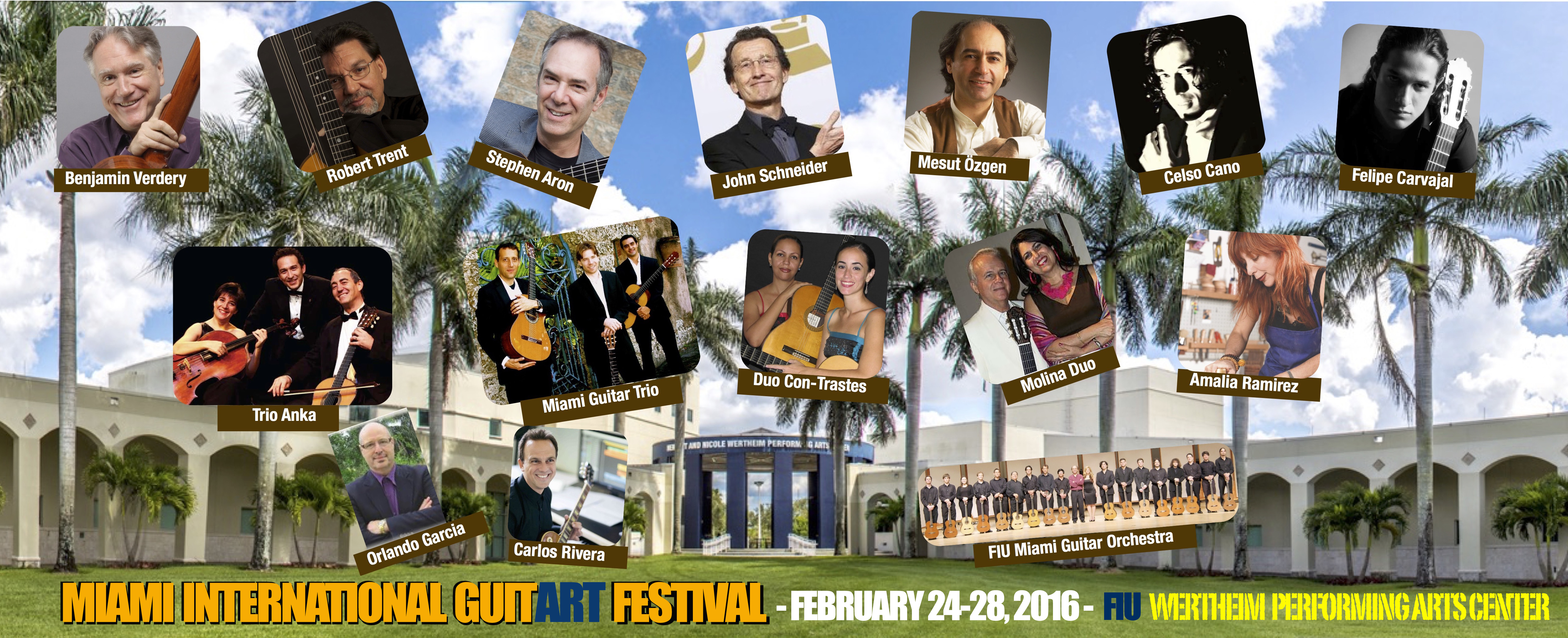 The Florida International University School of Music is hosting the inaugural edition of Miami International GuitART Festival (MIGF) from February 24-28, 2016. The festival, under the direction of FIU music faculty and guitarist/composer Mesut Özgen, presents renowned guitar artists in 11 concerts, 5 masterclasses, 3 lectures, and a composers panel, as well as a composition competition and a luthiers expo, which will present a wide variety of hand-built guitars in the Frost Art Museum concurrently with a special exhibition “The Shakespeare’s First Folio” held at the museum.