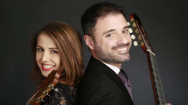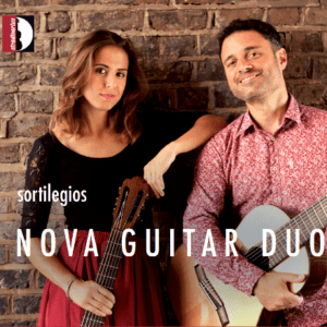 German Nelly von Alven and Brazilian Luiz Mantovani met when they were studying at the Royal College of Music in London and then formed the Nova Guitar Duo duo in 2016. One thing that separates them from most duos is their combination of instruments: Nelly plays a conventional six-string classical, and Luiz plays an eight-string “Brahms guitar.” Their exceptional debut album, Sortilegios (the Spanish word for “spells,” as in magic spells) definitely derives special power from the presence of those extra low strings on Luiz’s guitar, though to his credit it is usually a very subtle addition to the overall sound; very piano-like low-end accents in most cases. But in no way does this relegate him to some subordinate “bass” role in the duo. Sometimes it’s Nelly who is handling the lower registers, which Luiz then chirps above, and there are many instances where where they’ll trade lines in the same registers, or “answer” each other, or then drop into a lovely unison harmony. The duo have tremendous chemistry and synchronicity.