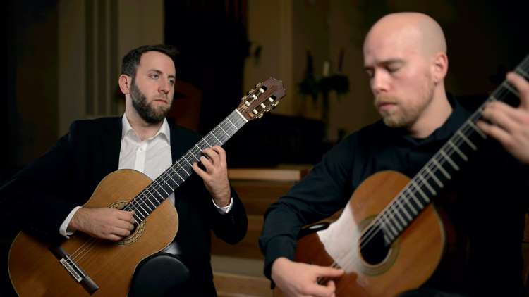 American brothers Adam and John Kossler explore a few different eras of more traditional classical repertoire on their superb album Danse Macabre, which features their own transcriptions/arrangements of works by Haydn, Brahms, Mendelssohn, and Saint-Saëns. All but the Haydn have keyboard antecedents, so their translation to two guitars feels natural and unforced.
