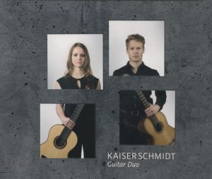 The young German duo of Jessica Kaiser and Jakob Schmidt have been performing together for a decade already, but this is their first CD release—and it’s a winner! The nearly hour-long disc contains just four quite diverse multi-part pieces: two from the late 19th century (by Enrique Granados and Gabriel Fauré), and two from the late 20th century (by Astor Piazzolla and Dušan Bogdanovic); all but the Bogdanovic were originally piano pieces. The playing is superb throughout, the strong communication between the players clearly evident. I’m a sucker for the intoxicating Romantic melodicism of Valses Poeticos (played in full here) and Faure’s wonderful six-part Dolly Suite; those sandwich the lively and always appealing Tango Suite. The Bogdanovic Sonata Fantasia (originally dedicated to the Assad Brothers) is more obviously “modern” in its sensibilities, but makes for a bracing conclusion to a fine program. The recording by Hans-Werner Huppertz is excellent, as well.