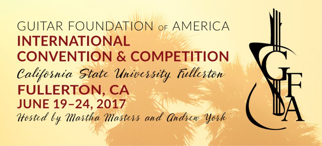 The Guitar Foundation of America will hold the 2017 GFA International Convention and Competition from June 19-24, 2017 at California State University, Fullerton in Fullerton, CA. This annual event brings together approximately 600 classical guitar masters and enthusiasts from all over the world, including some of the most elite performers of classical guitar. The 2017 GFA International Convention and Competition will be co-hosted by CSU Fullerton guitar faculty Martha Masters and Andrew York.