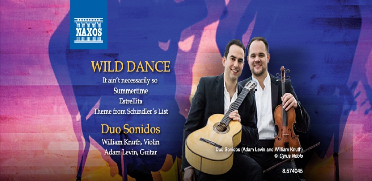 WILD DANCE: Duo Sonidos (William Knuth & Adam Levin) unleashes a wellspring of exciting new violin/guitar chamber music transcriptions previously deemed unthinkable on the guitar. From Karol Szymanowski’s virtuosic Dawn and Wild Dance to John Williams’ haunting Theme from Schindler’s List, this colorful mosaic unveils a world of charm and intimate expressivity with world premiere recordings of Gregg Nestor’s arrangements.